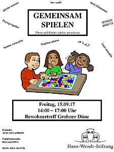 Die Hans-Wendt Stiftung führt 3 Spielenachmittage für Eltern mit ihren Kindern durch. Unter dem Motto: „Gemeinsam Spielen“ bieten wir Spiele für Kinder unterschiedlichen Alters an, von 3 – 10 Jahren, an