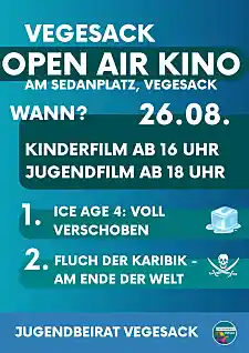 Nach intensiver Planung steht nun ein Termin fest: Unser Jugendbeirat zeigt am Samstag, den 28.08. zwei Filme auf dem Sedanplatz.